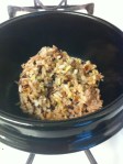 - Carefully stir in the dadegi (다대기) without disturbing the rice at the bottom.