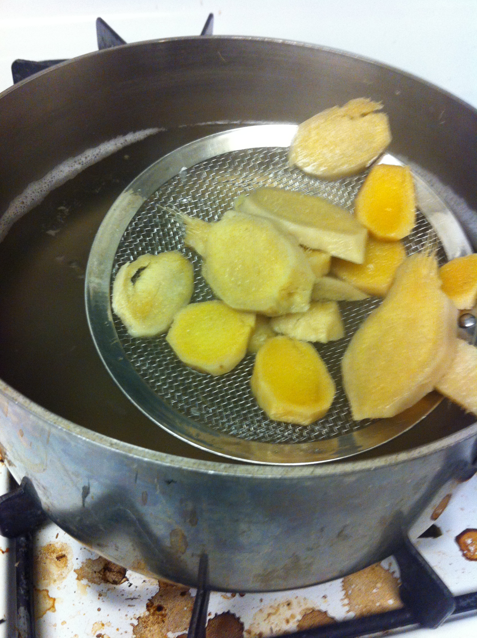 - After the ginger is finished brewing, take out the ginger pieces by using a sieve or a strainer.