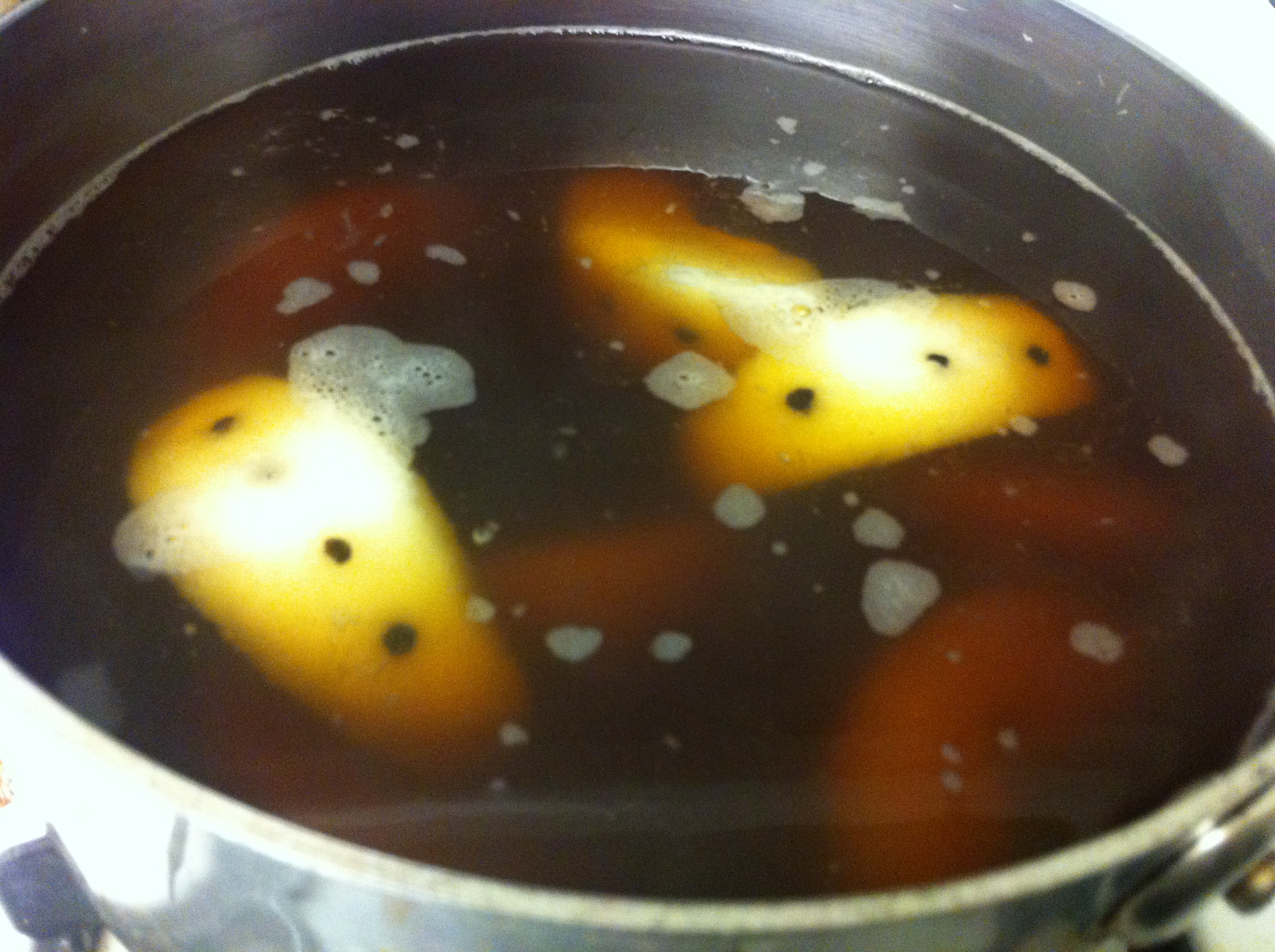 - Drain the pear slices and add them into the pot where the ginger was brewing with 1/2 cup of light brown sugar. I had dark brown and white granulated sugar so I used 1/4 cup each. Simmer for another 10 minutes.