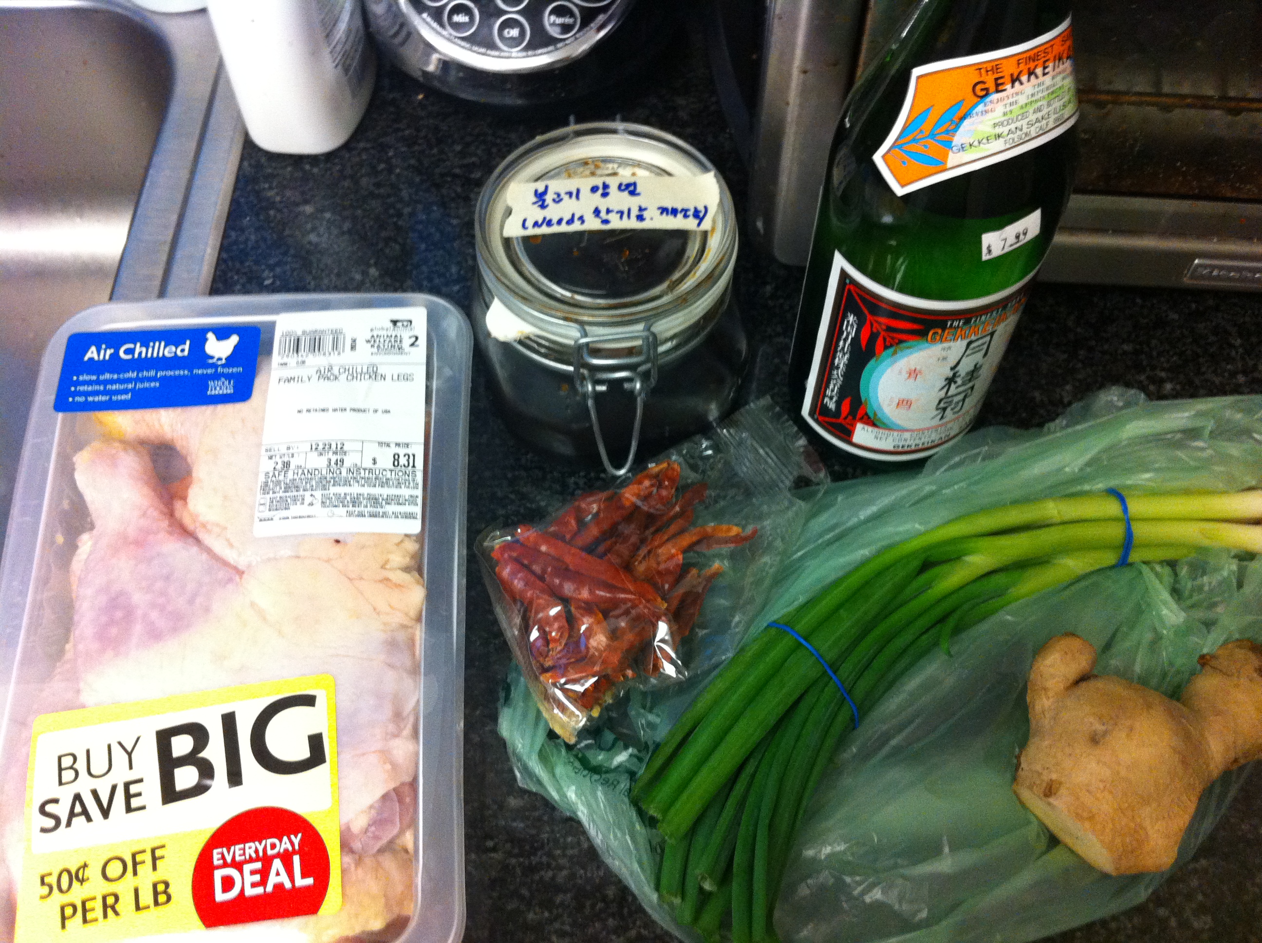 I decided to call this “Mom’s Chicken Galbi” although at home, I simply call it “Mom’s Chicken.” This dish was one of my favorites as a child and was one of the first dishes I learned to make in college. When I called my mother in Seoul for her recipe about 15 years ago, she simply said, “add a little more ginger to bulgogi sauce (same as galbi marinade).” I’ve added some of my own twists throughout the years such as adding sake and a few dried hot peppers to give it a little kick. The hot peppers are optional for families with children who might not like this. I also started adding shitake mushrooms and sweet potatoes (goguma, 고구마) since my mother started living with us because she does not eat chicken anymore. Again, this is optional. This is my fourth part of the Korean BBQ or bulgogi marinade series alone with bulgogi, gungjung-dduckbokki, and LA galbi.