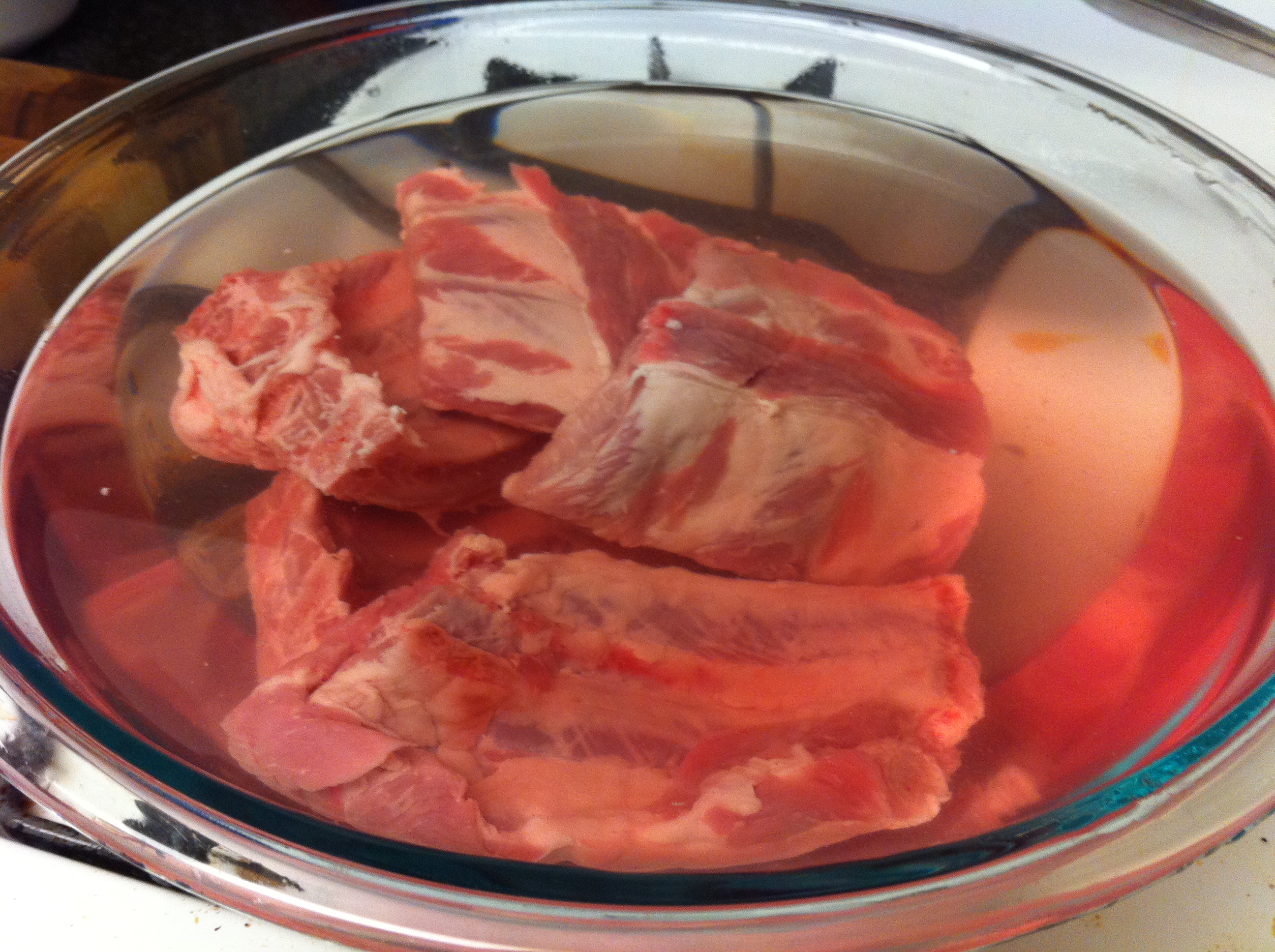 - In a large bowl or pot, place the ribs in cold water. This takes out the blood in the meat and bones that can cause an unpleasant odor. Soak for at least an hour.