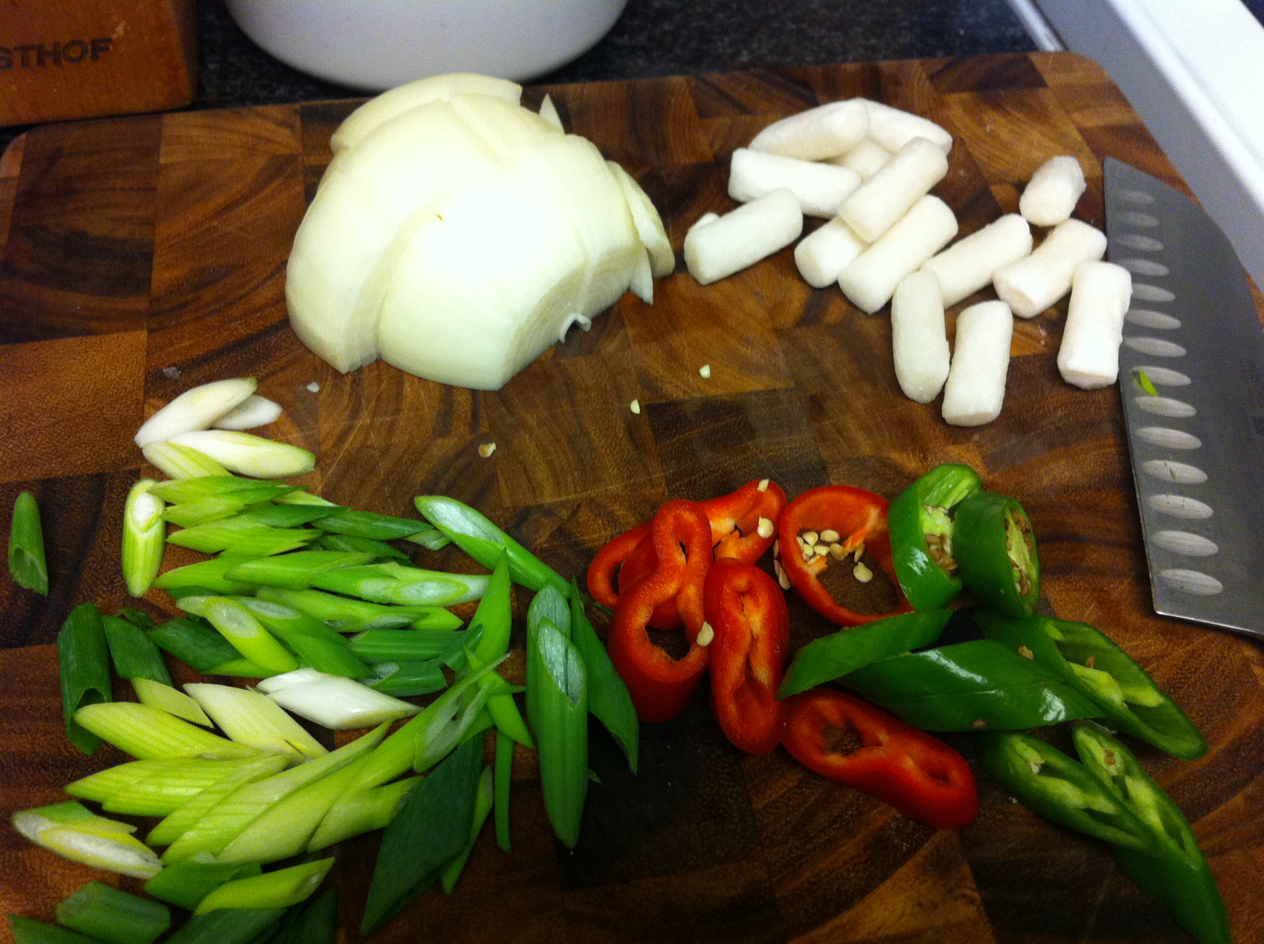 - 1 green Korean pepper, jalapeño or serrano pepper, cut diagonally into about 1/2 inch pieces