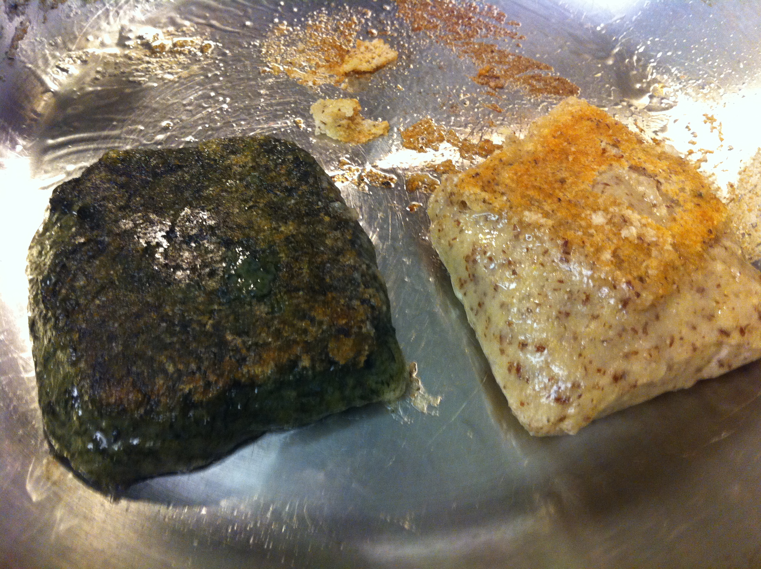 - Place a plain ttuck on the skillet and do not move it until the surface is browned and crispy. Flip it on the other side and do the same. Today, I used ssook-injulmi (쑥인절미) and hyunmi–injulmi (현미인절미), which is a rice cake made with brown rice.