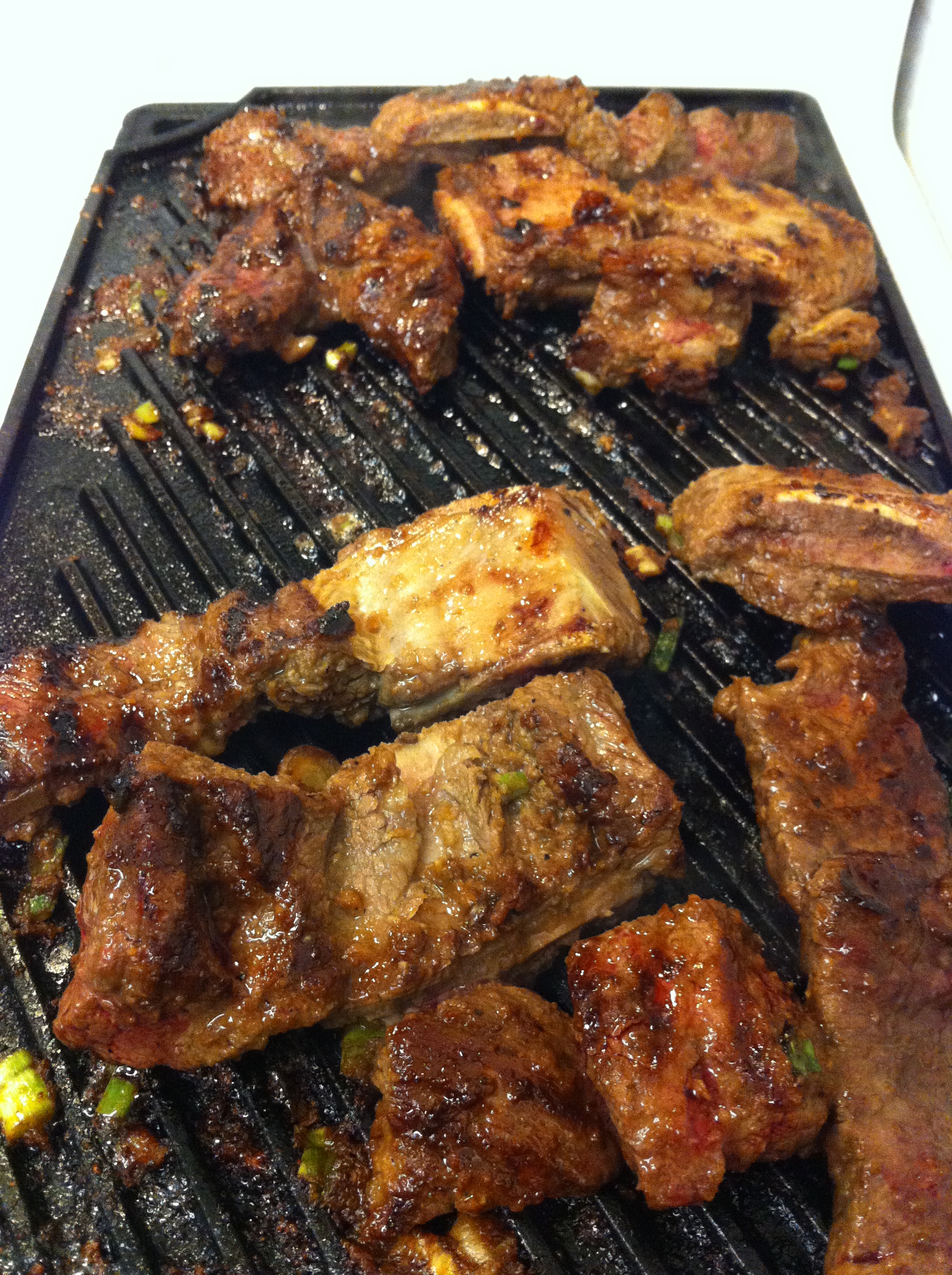 3. Grill the short ribs on a grill pan. You can also place a skillet on high heat, drizzle with sesame oil and pan fry the short ribs.IMG_2818