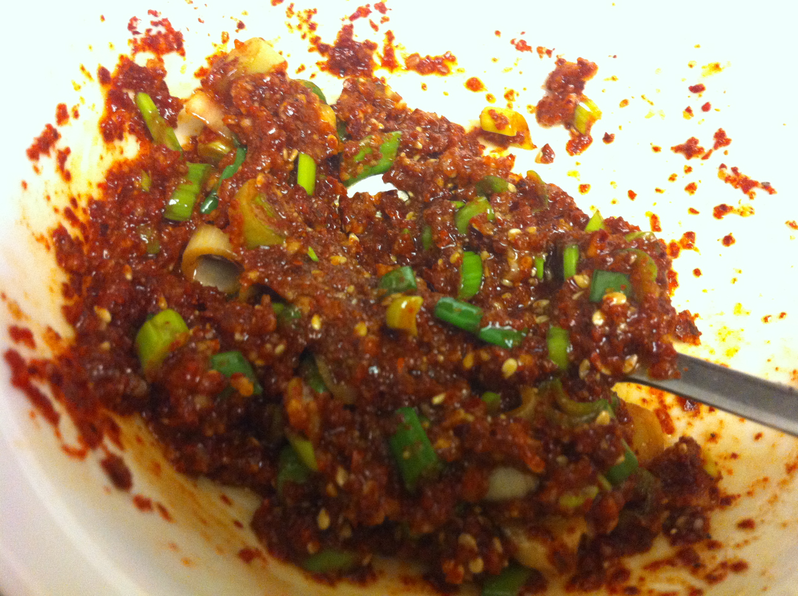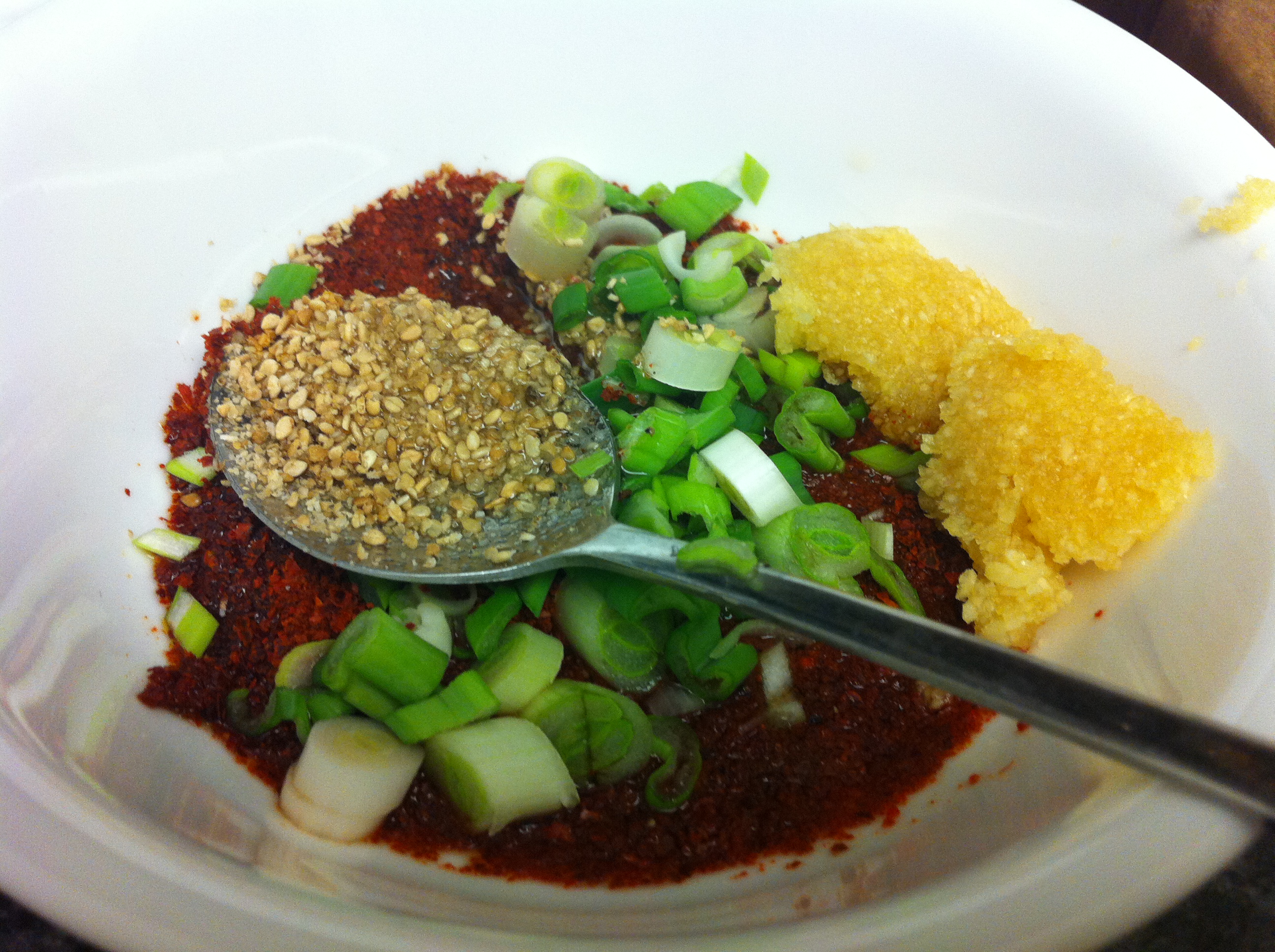 - 2 tablespoon of gochgaru (고추가루, Korean red pepper powder)
