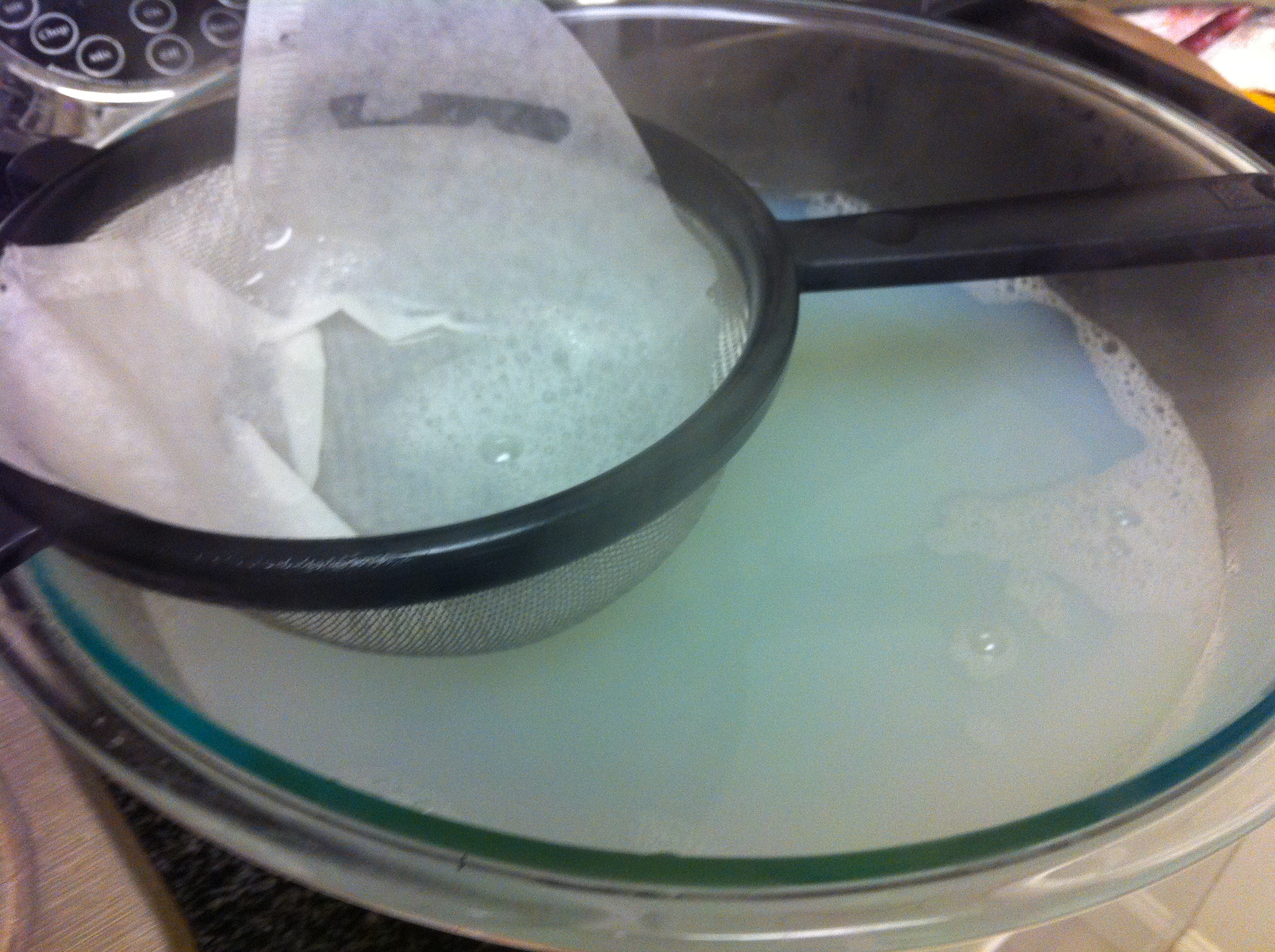 5. Strain the broth over a large bowel with a cheesecloth or coffee filter in a sieve to filter out any sand that might have been in the mussels. I use coffee filters when I don’t have cheesecloths by simply opening up the coffee filter in a singles sheet.IMG_3091
