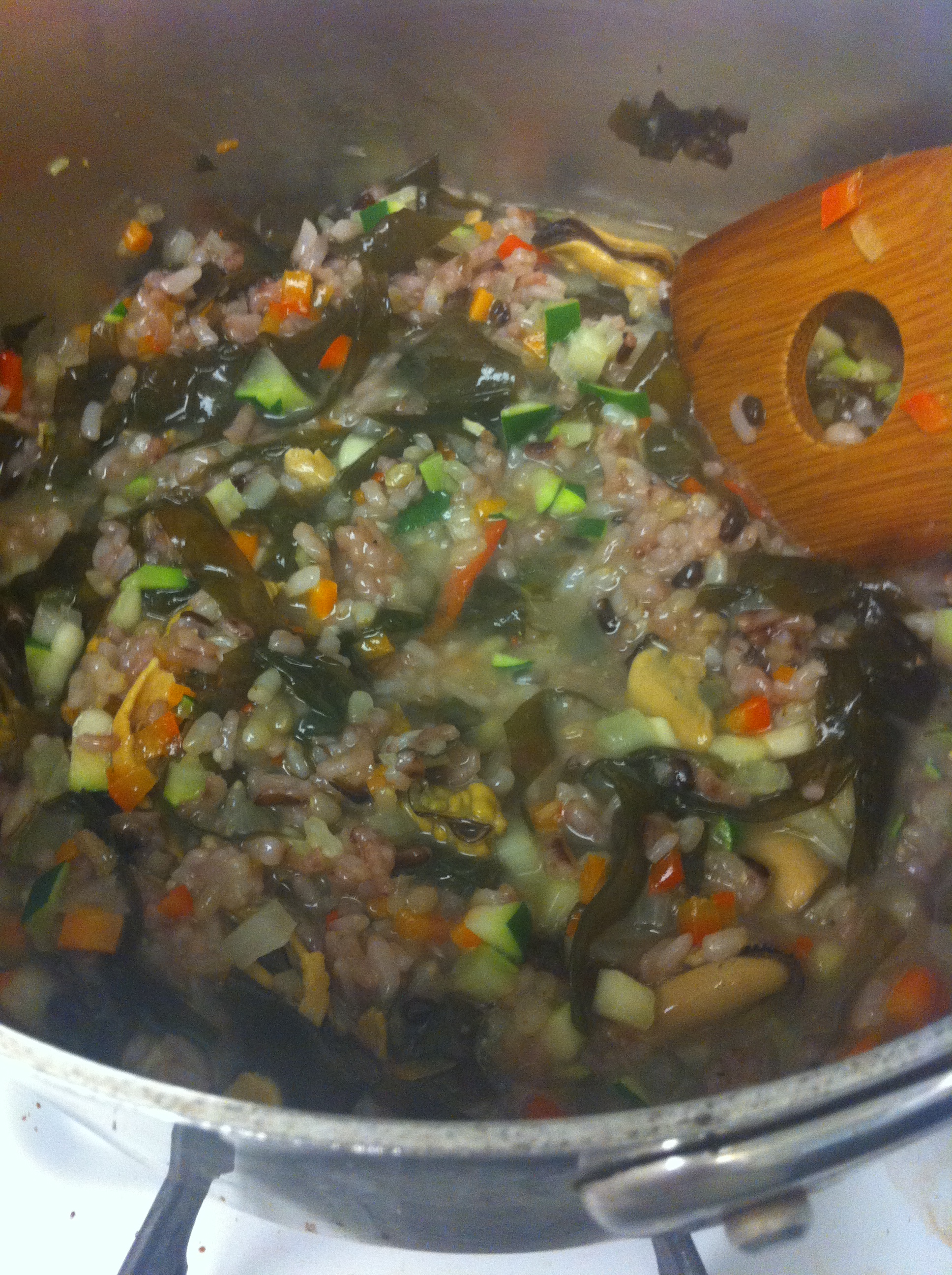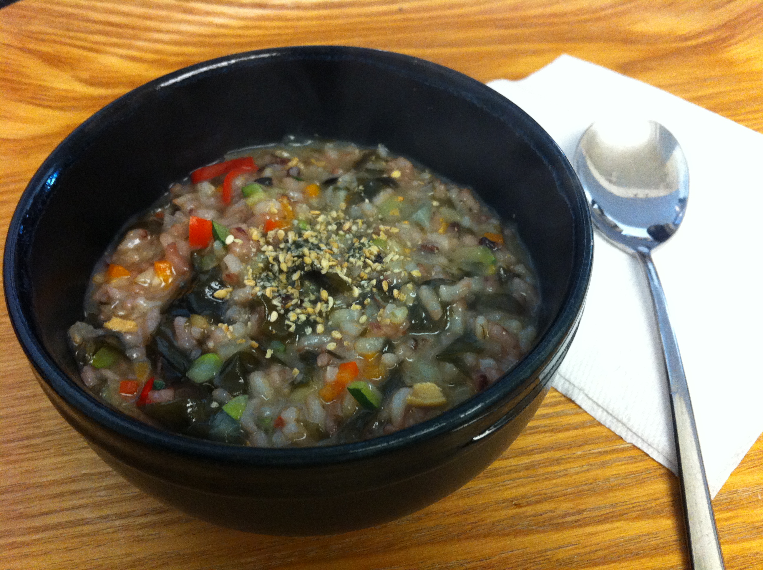 One of my favorite breakfasts is juk or porridge made of leftover soup. It is quick, easy and nutritious.