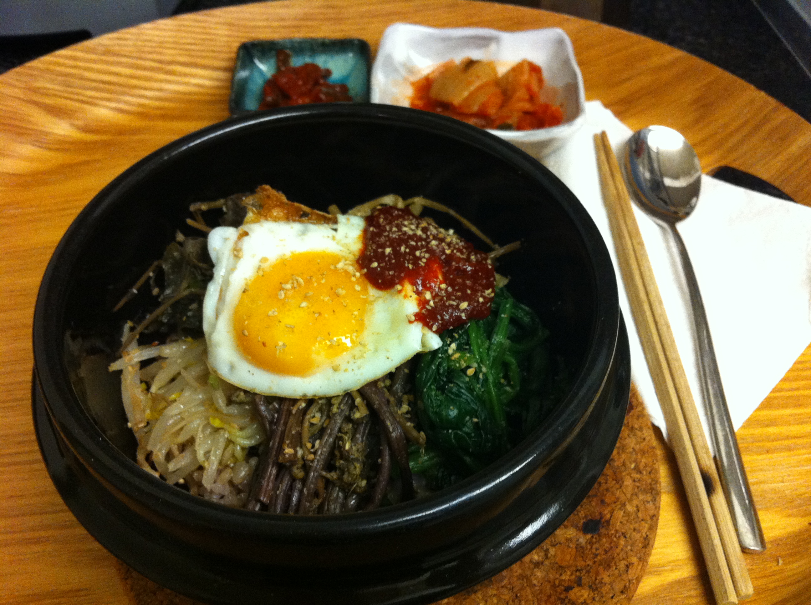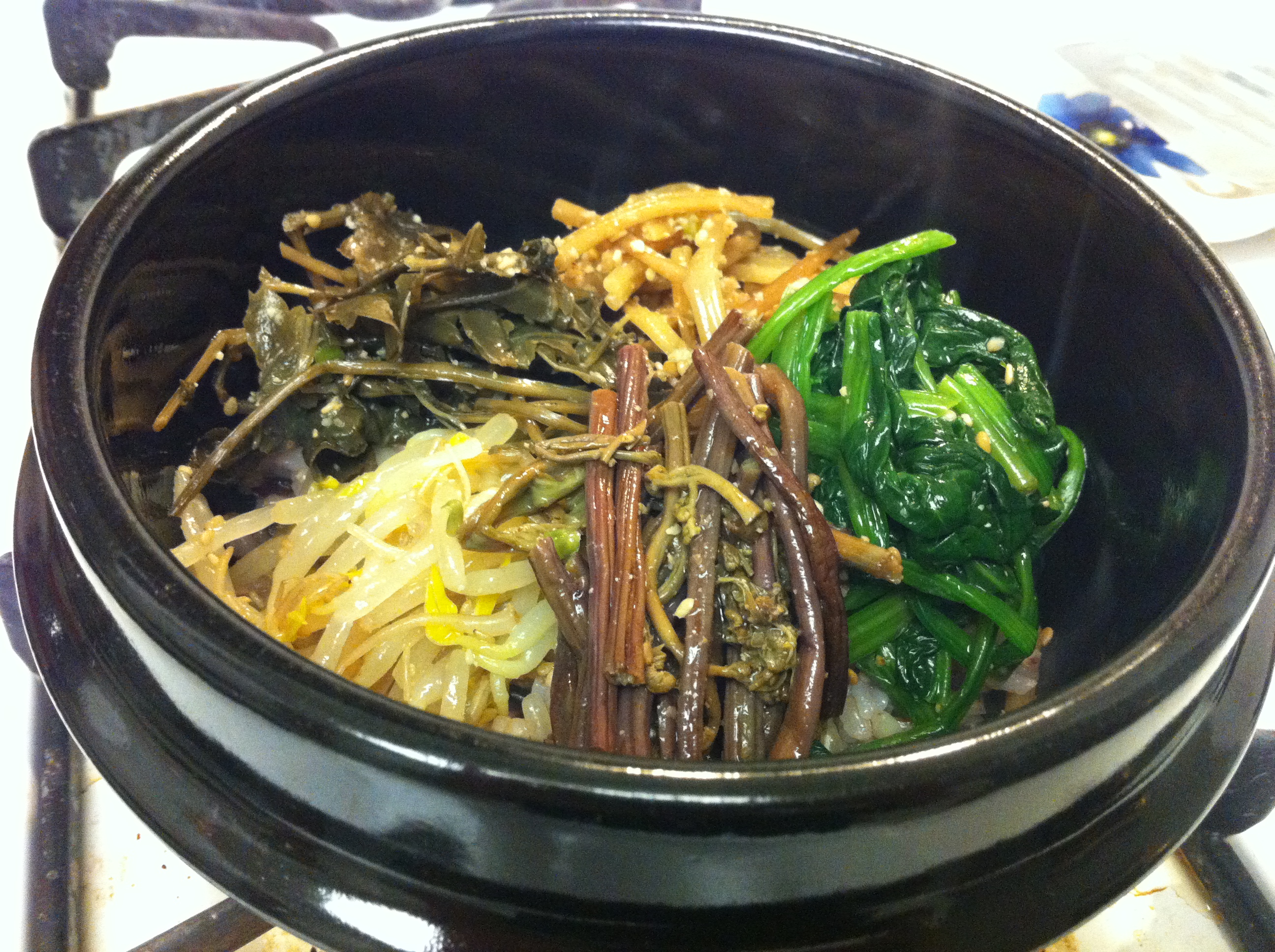 [Dolsot: Stone bowl, Bibimbap: a rice dish with variety of vegetables and optionally meat]