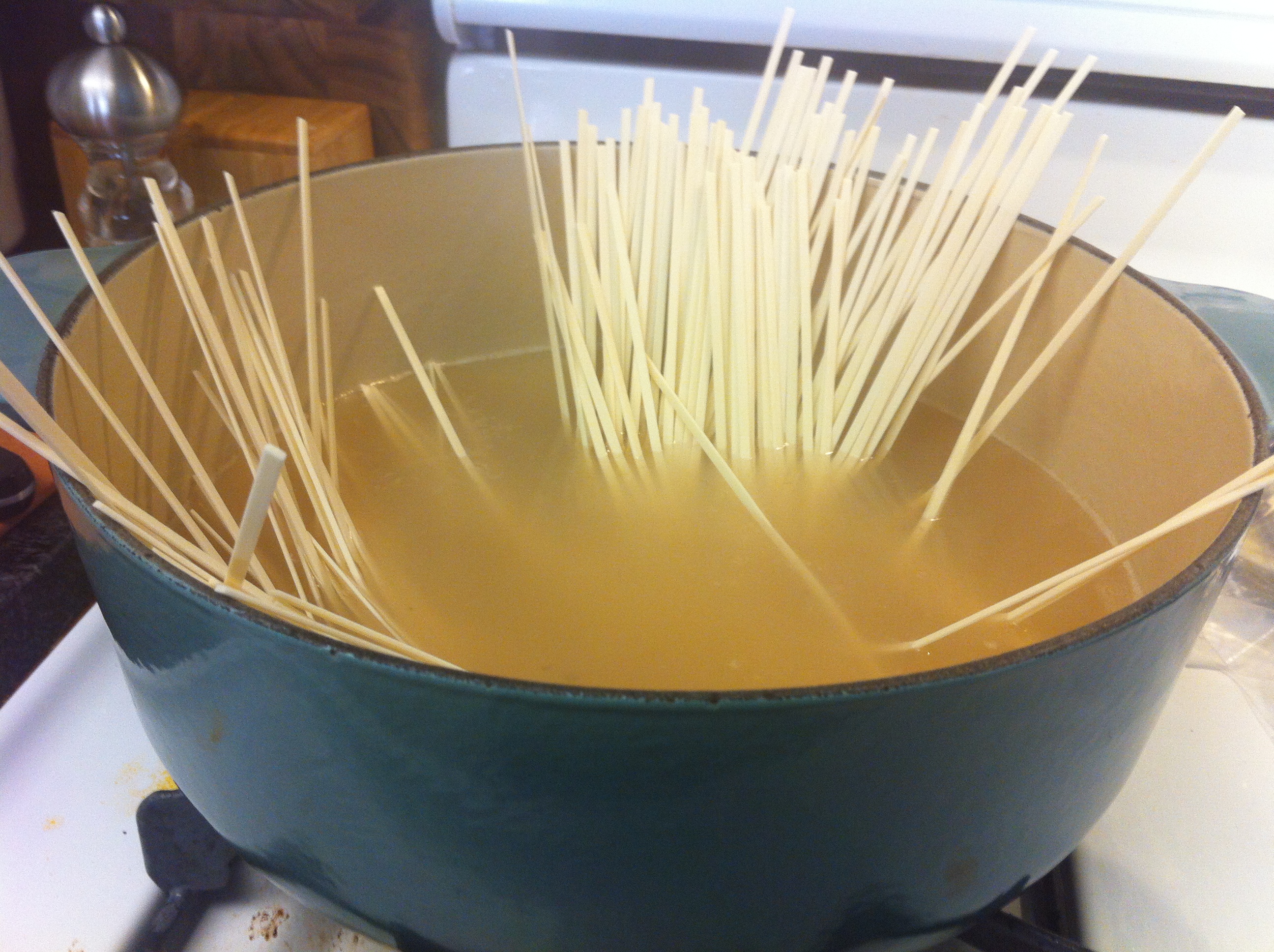 4. Cook the noodles according to package instructions. I used the dried kind, so the total cooking time for the noodles was 8 minutes.