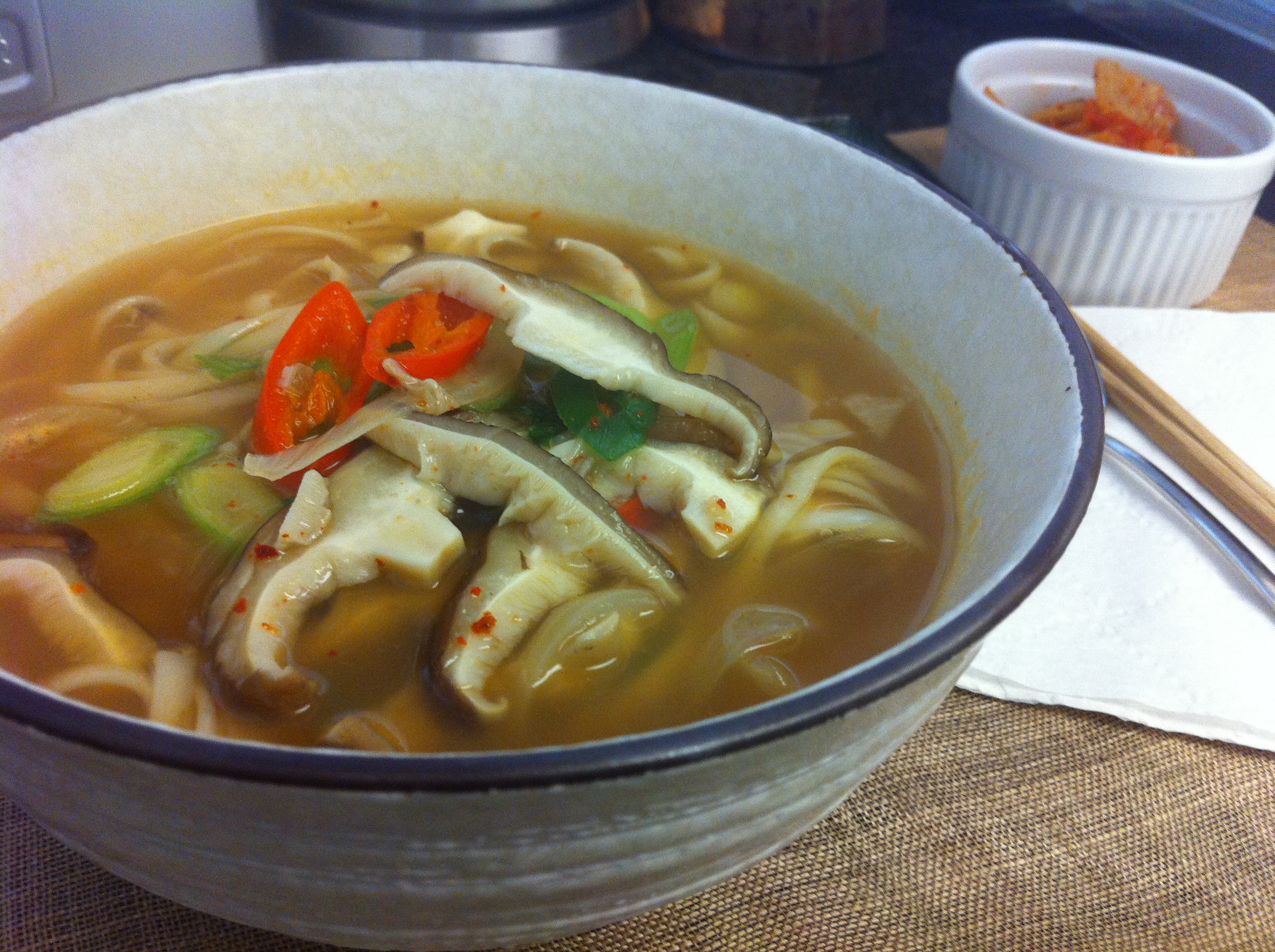 I made a delicious and fast (if you already have sagol broth) noodle soup with sagol broth or bone marrow broth. In fact, it was my first time experimenting with this dish and came out so yummy, it became my favorite noodle dish. It only took about 15-20 minutes and was simple to make yet extremely satisfying. This dish came from a few inspirations, a Korean TV show that featured a famous restaurant in Seoul that specializes in a noodle soup with beef/bone marrow stock and my favorite restaurant in Seoul, Hanwoori (한우리) that has the best guksoo-jeongol (국수전골, beef noodle stew). You can make it spicy or mild.