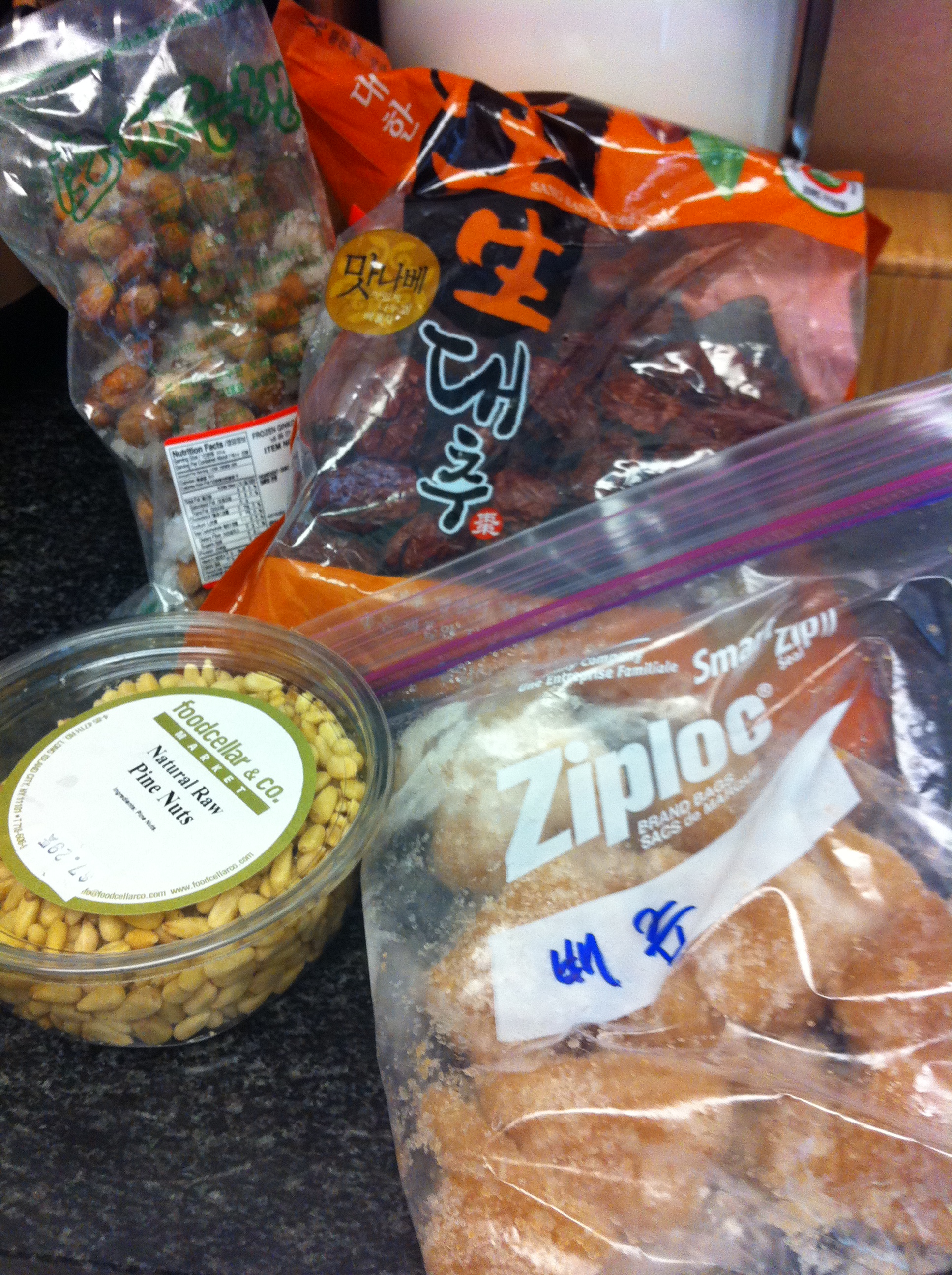 • About 10 eunhaeng (은행, gingkoes) – optional