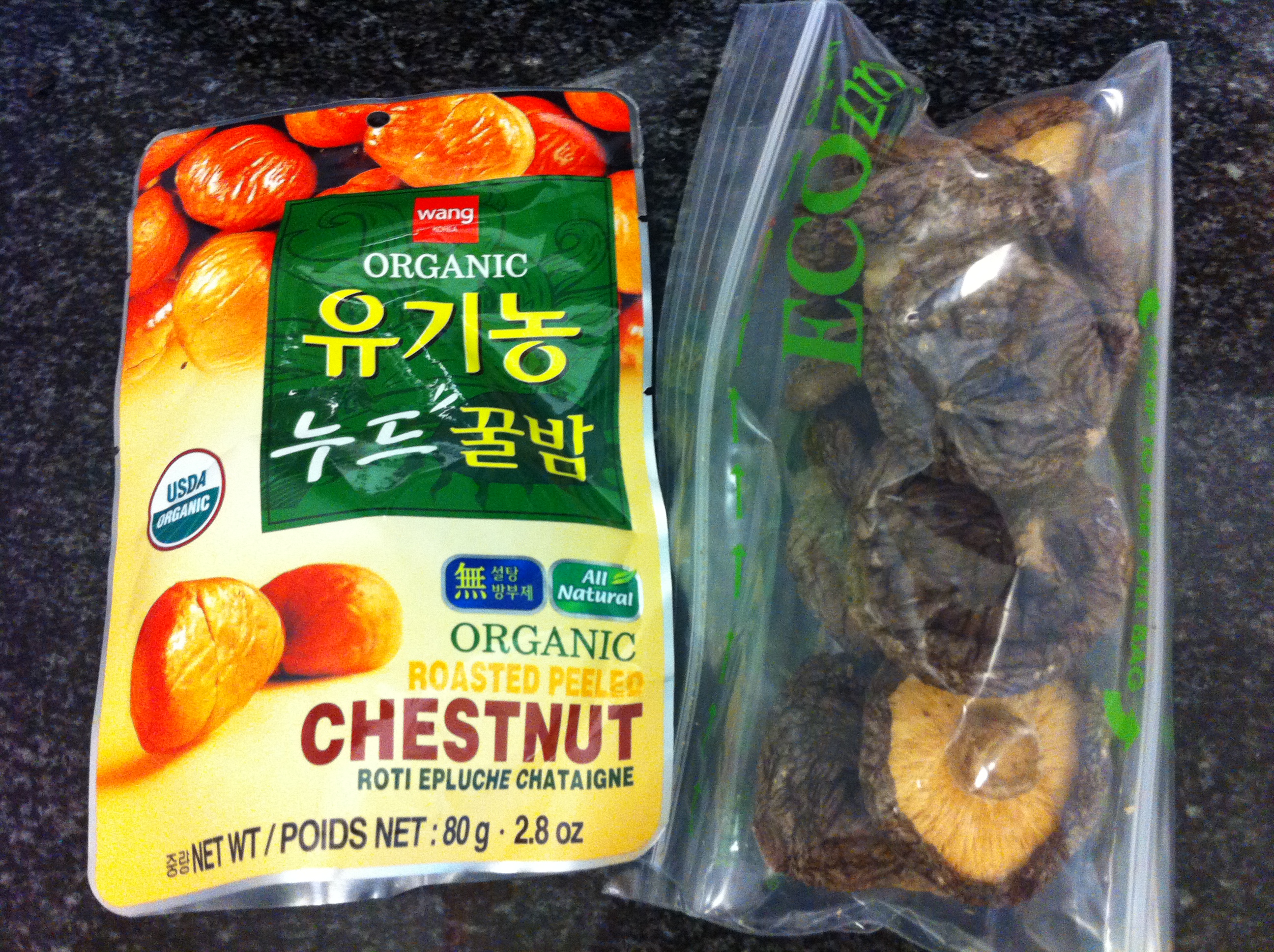 • About 10 bam (밤, chestnuts), peeled, fresh or packaged – optional
