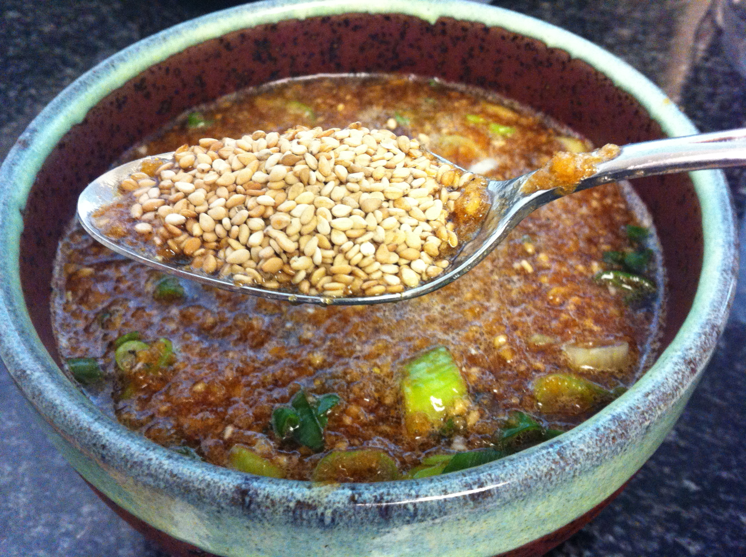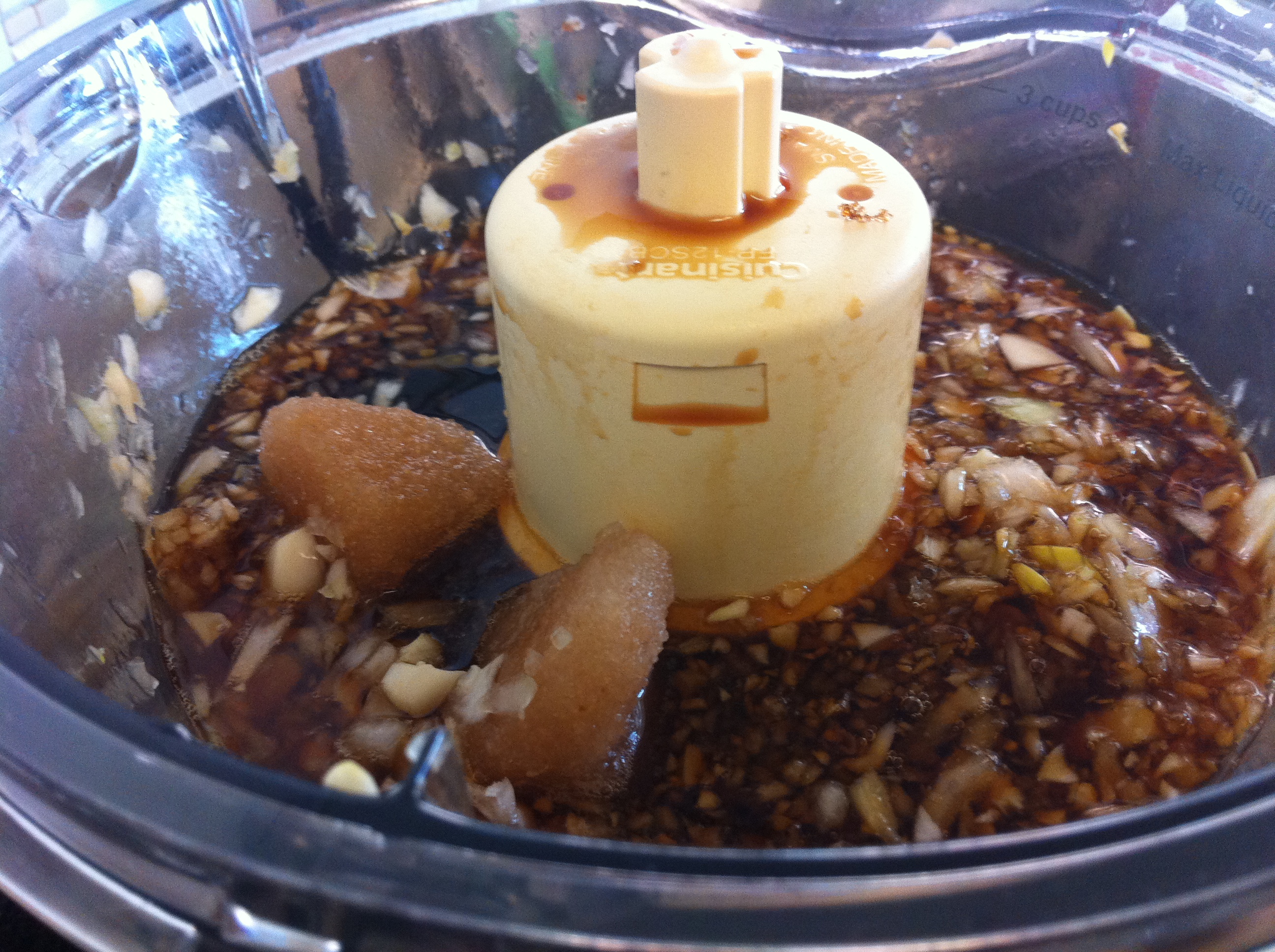 2. Make the marinade. You can simply throw in all the ingredients except for the diced scallion and sesame seeds in the blender or food processor. Add the scallions and 1 tablespoon of sesame seeds afterwards. You can also just grate the onion and fruits with a grater or microplane and mix in the rest of the marinade ingredients.IMG_3536 IMG_3546 IMG_3552 IMG_3554