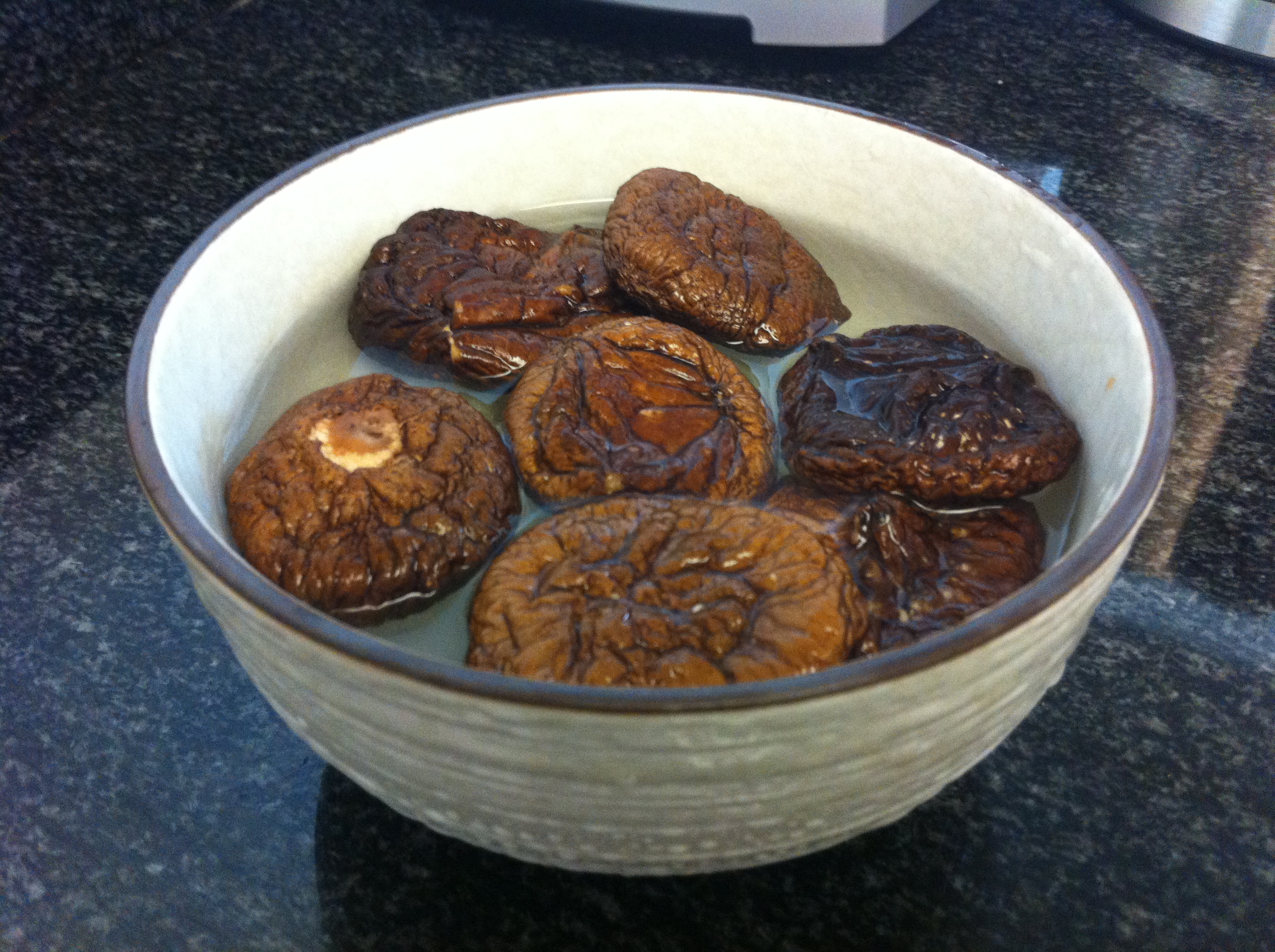 4. If you are using dried shitake mushrooms, soak them in luke warm water for about 20 minutes.IMG_3559 IMG_3560
