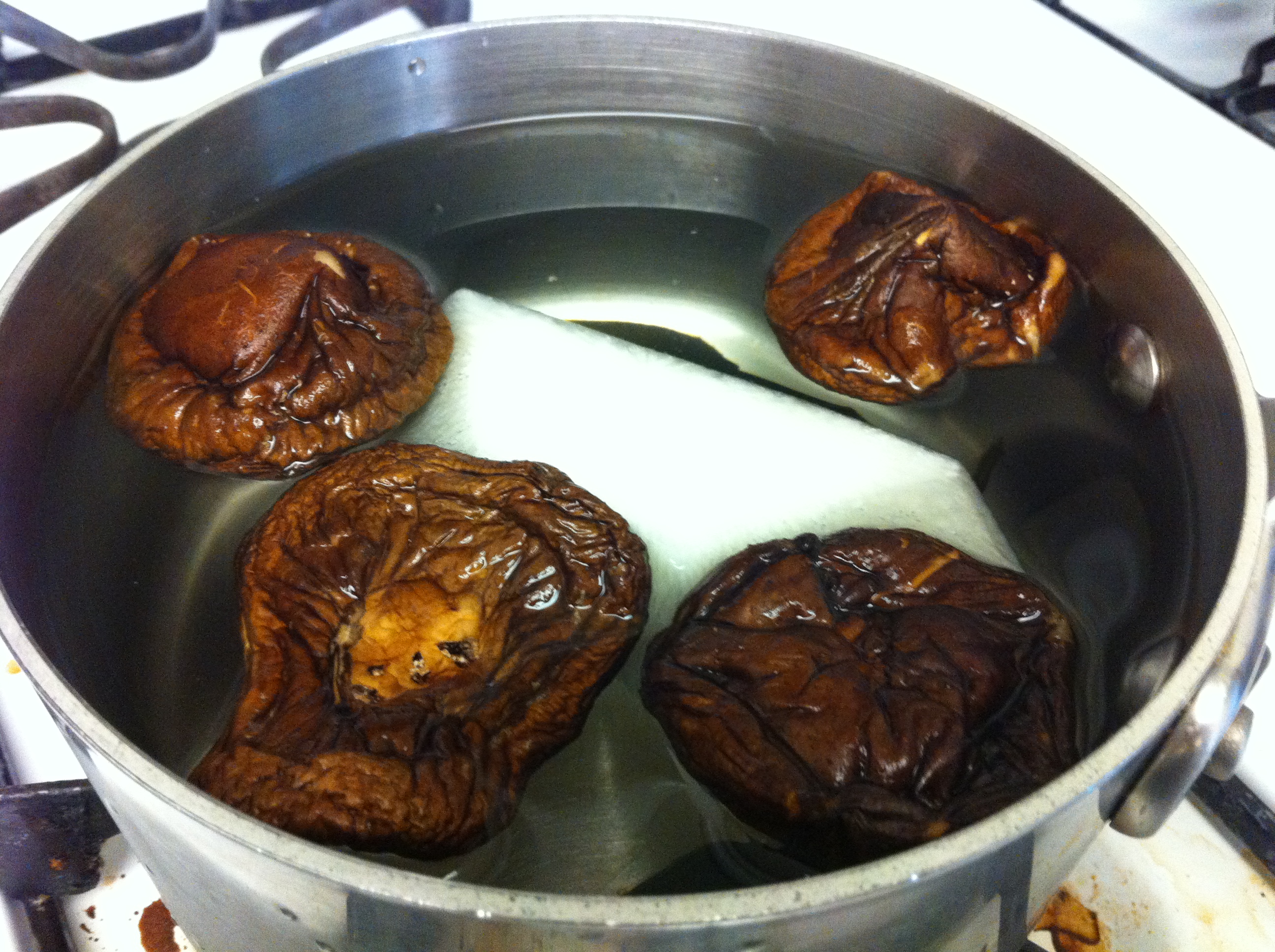 4. Lower the heat and let the mushrooms and moo simmer until the moo is soft. You can discard the moo but save the mushrooms.IMG_3889