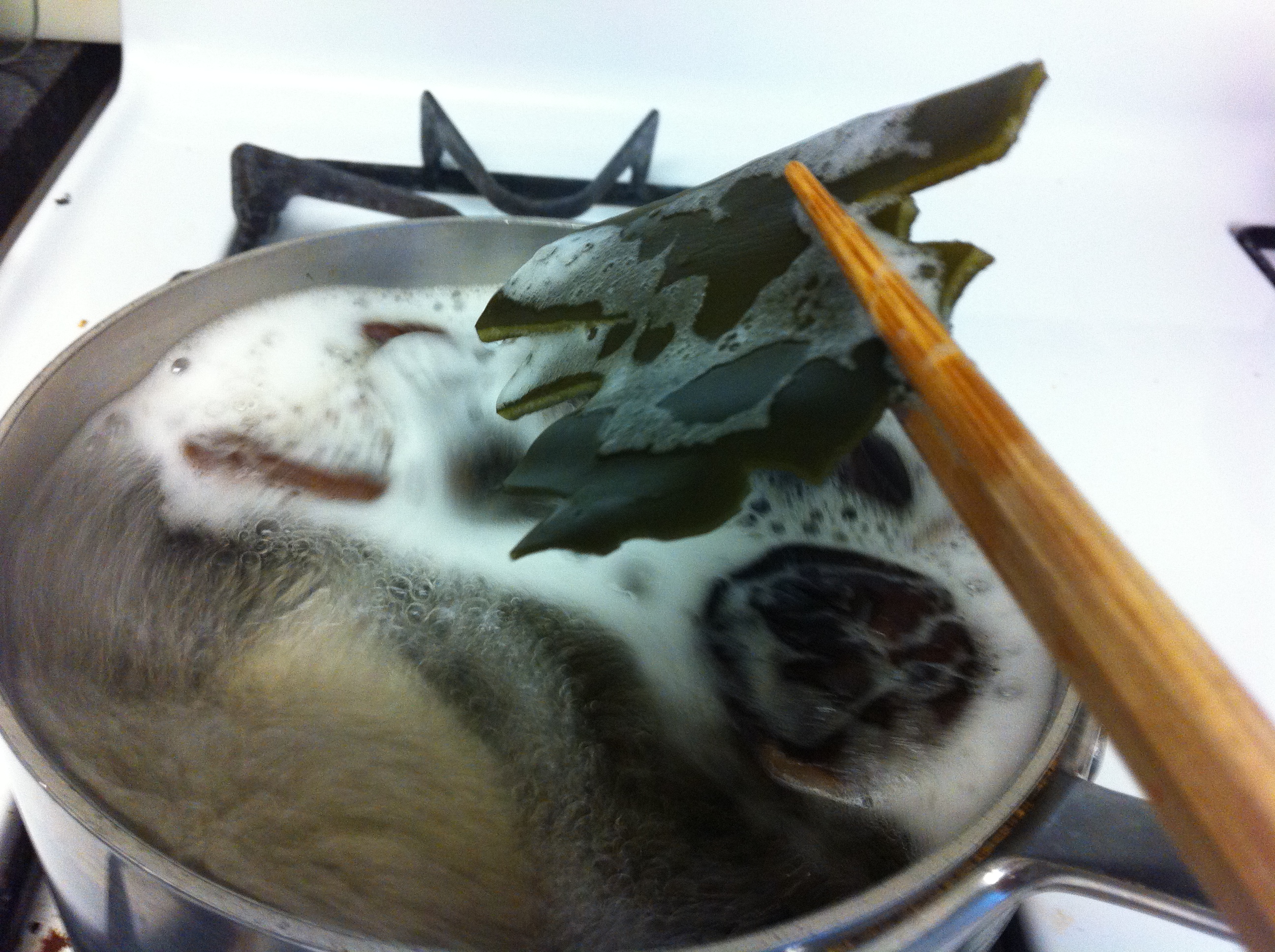 3. Bring the stock to a boil. Take out the dashima once the water comes to a boil.IMG_3882