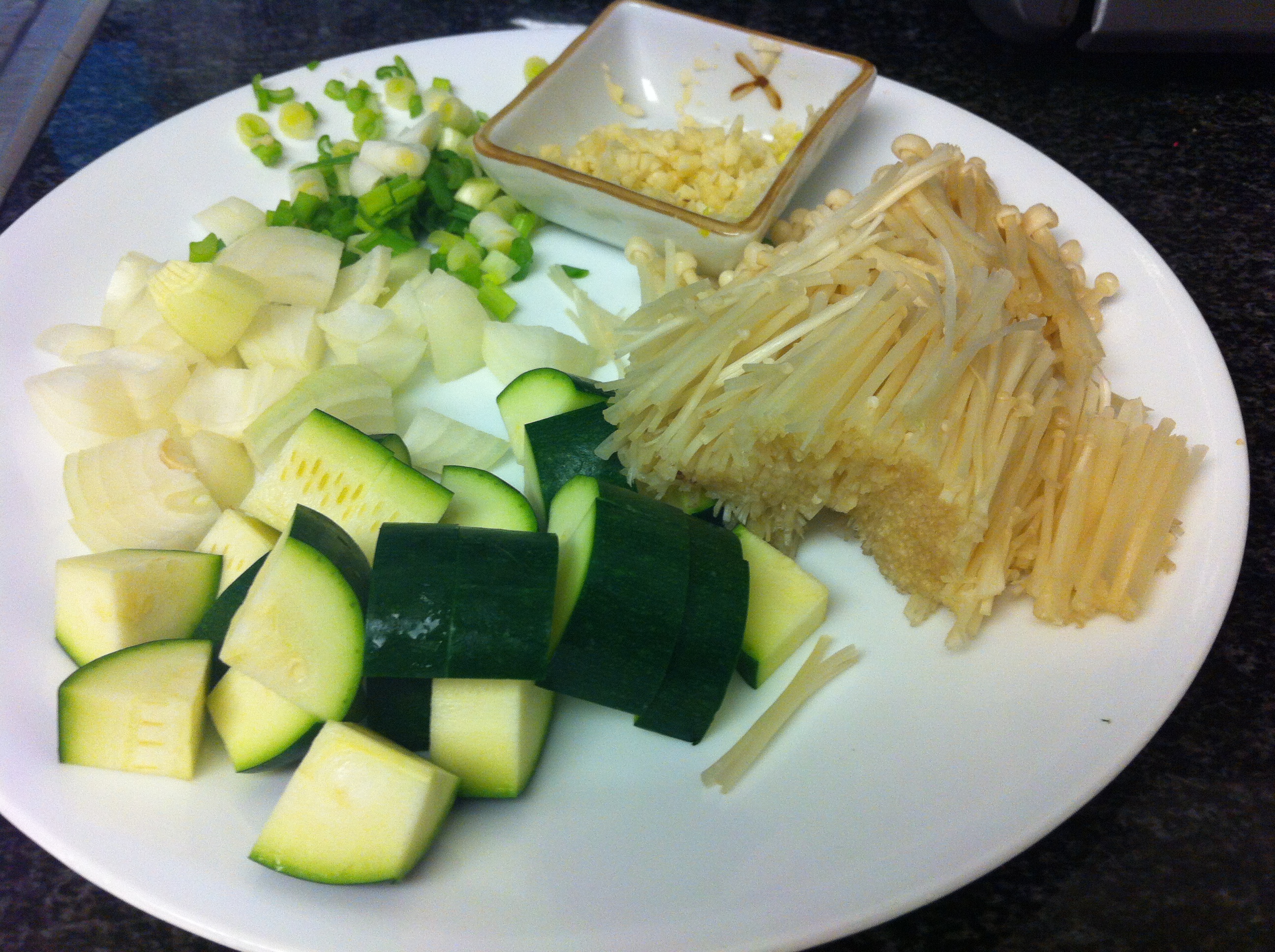 • 1-2 enoki mushrooms or shitake mushrooms (soaked in water if you use the dried kind), cut into thin slices – optional