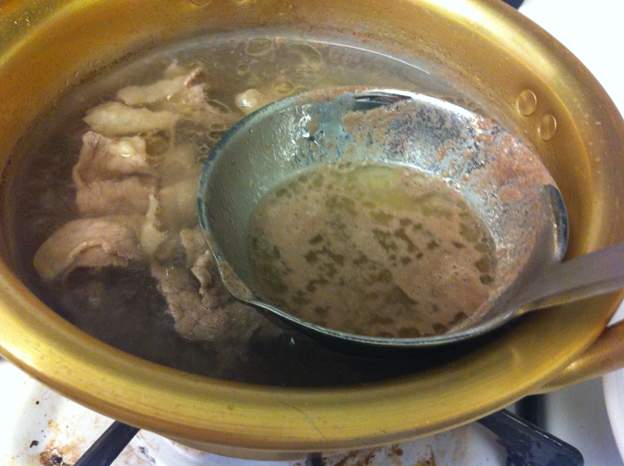 3. When the water comes to a boil, skim off the fat and foam.IMG_4258