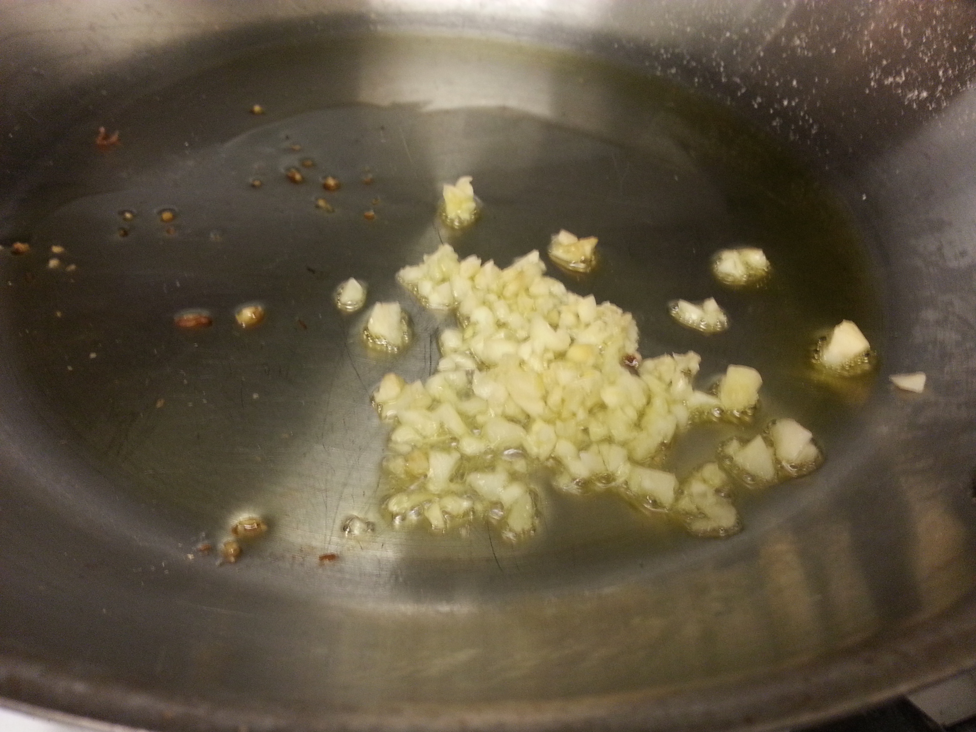 - Drizzle the oil into a pan on medium heat, then add the minced garlic.