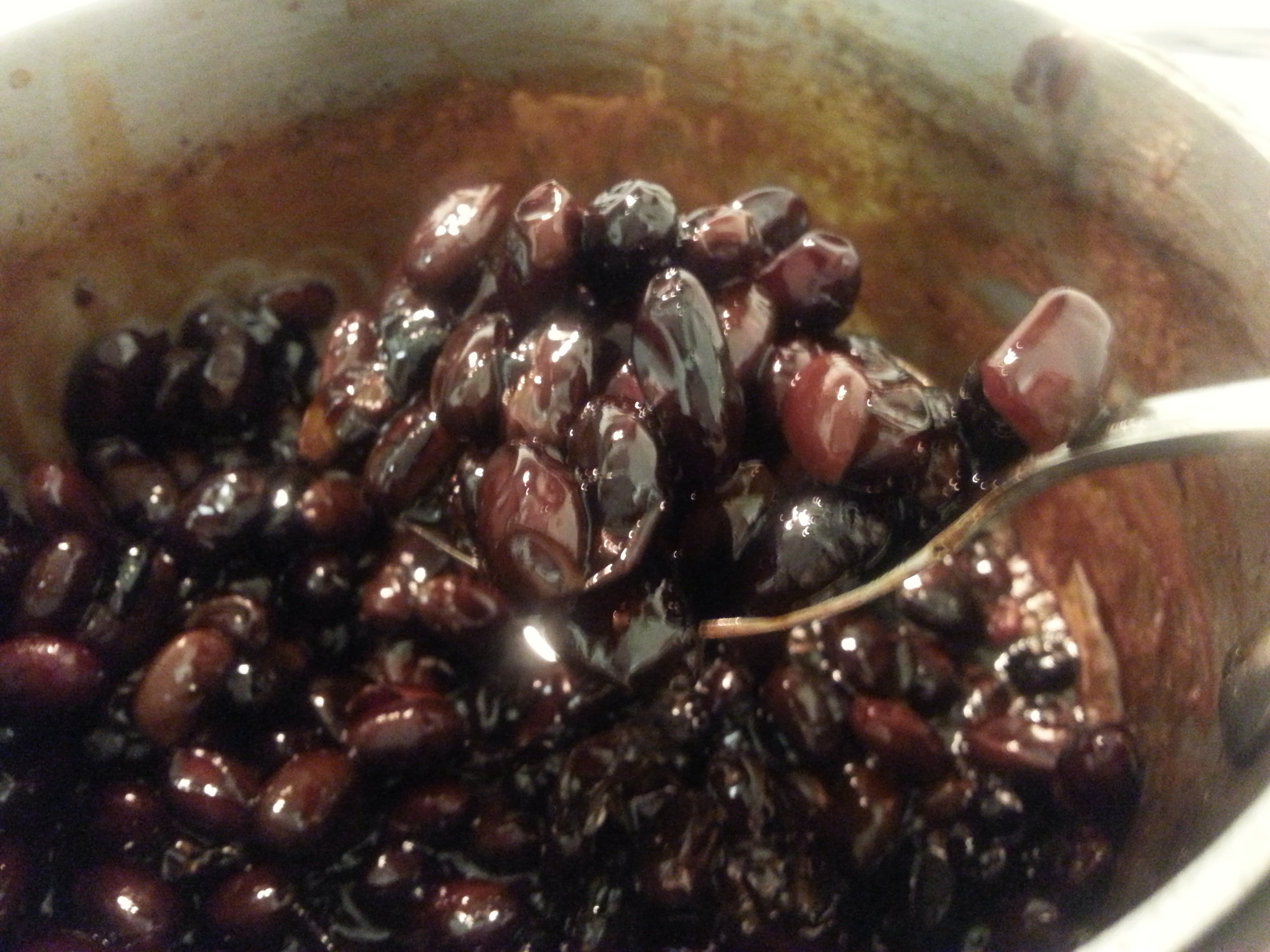 There are a few staple banchans (반찬) or side dishes in our household, which include different namuls (나물, marinated vegetables), myulchi-bokkeum (멸치볶음, sautéed dried anchovies) and kong-jorim (콩조림). Kong-jorim is made with dried black beans marinated in sugared soy sauce. You can find the black beans in all Korean markets. Look for the ones that say 서리태 pronounced “seoritae”. This kind of bean is said to be good for the skin, prevents cancer, beneficial to high blood pressure and prevents hair loss. Once made, this healthy banchan lasts weeks in the refrigerator. Making this requires a little more patience but only a few ingredients.